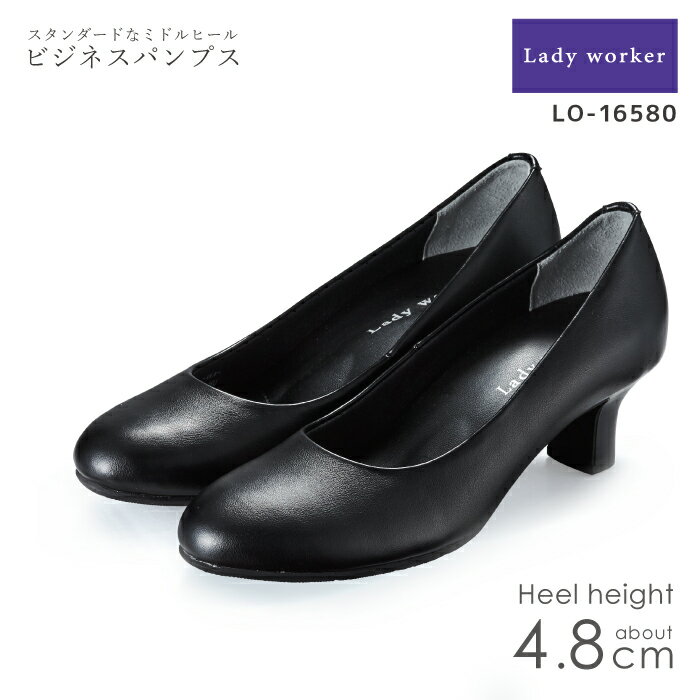 Lady worker レディーウォーカー アシックス商事 シンプルな黒パンプス 4E LO17080 LADIES FORMAL OFFICE