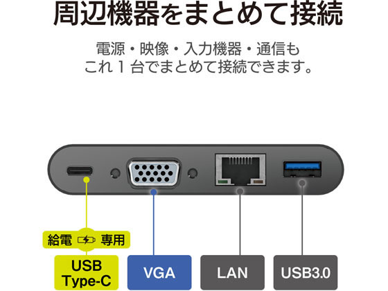 【検索用キーワード】エレコム エレコム elecom DST−C10WH USB Type−C接続ドッキングステーション VGA USB ハブ USBハブ usb ハブ ドッキング ステーション hub anker usbハブ セルフパワー macbook pro surface デスクトップ iMac ノートPC メモリ 充電 増やす ポート 軽い 速い HDD パワーデリバリー対応 USBC TypeC タイプC充電用Type−C1ポート/USB(3.1)1ポート/D−sub1ポート/LANポート/30cmケーブル/ブラック