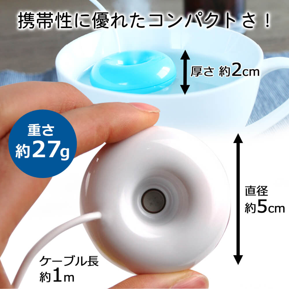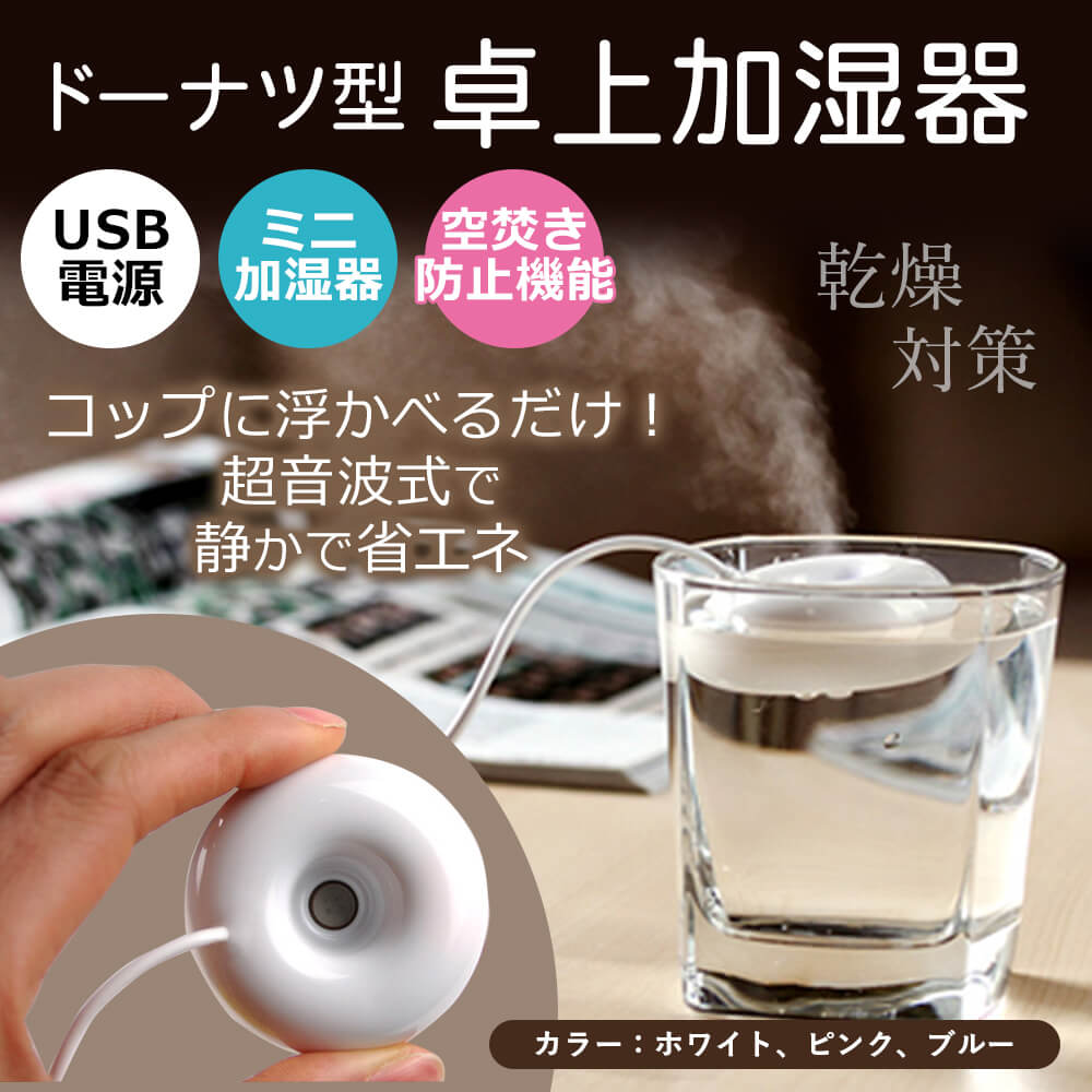 USB電源ドーナツ型卓上加湿器【送料無料】 季節家電 卓上 潤い 乾燥 USB 加湿 コンパクト オフィス USB 乾燥対策 持ち運び 便利 簡単仕様 3色 ポータブル加湿器【内】