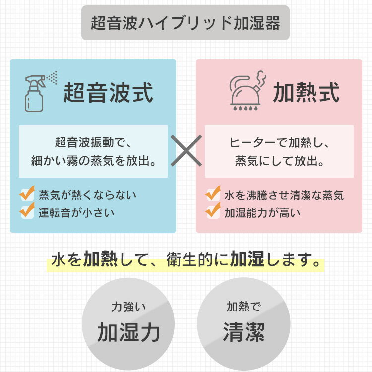 【最大1,000円OFFクーポン配布中】 加湿器 ハイブリッド おしゃれ 上から給水 上部給水 お手入れ簡単 洗える コンパクト リビング 寝室 オフィス 大容量 3.8L 16.5畳 タイマー 超音波 加熱式 ハイブリッド式加湿器 550ml/h 白 ホワイト