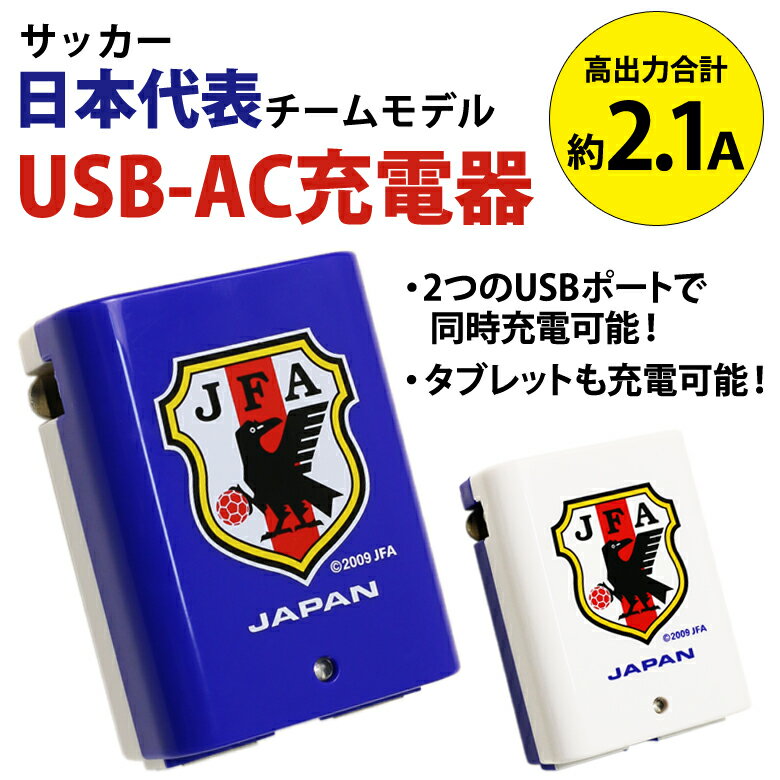 急速充電器 ACアダプター 日本代表 サッカー JFA USB コンセント 充電器 ACアダプタ 2ポート 高出力 計2.1A 急速充電 急速 同時充電 iPhone7 スマホ スマートフォン タブレット USB充電器